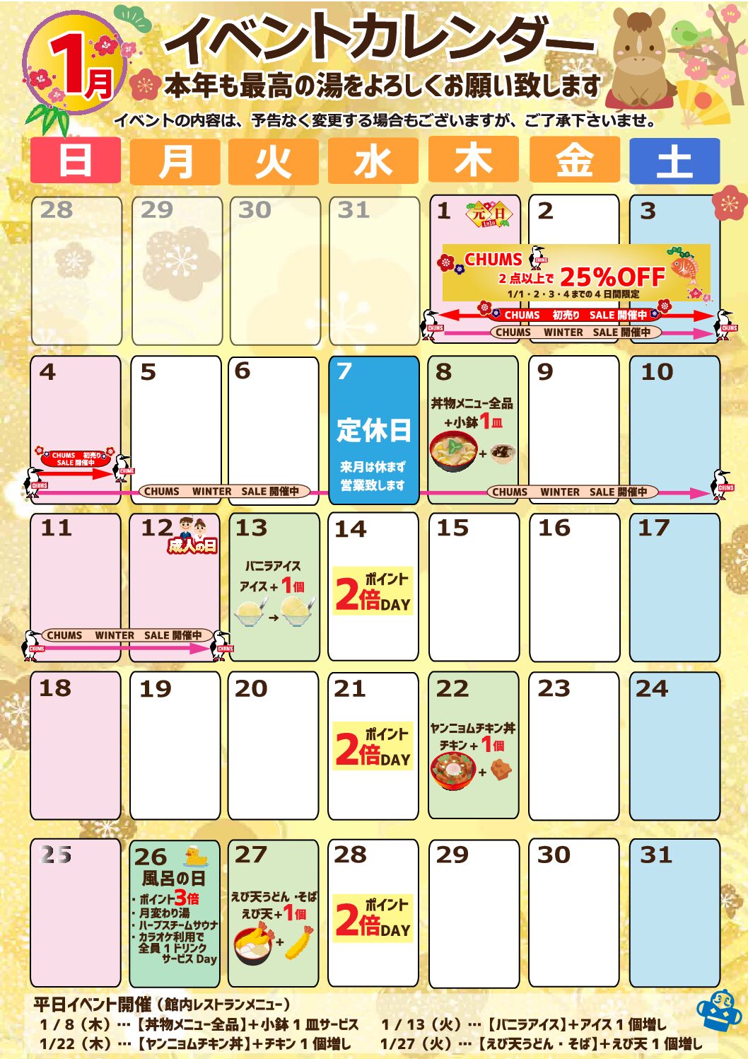 日頃より最高の湯をご利用いただき誠にありがとうございます。 1月開催のイベントをお知らせします。 本...
